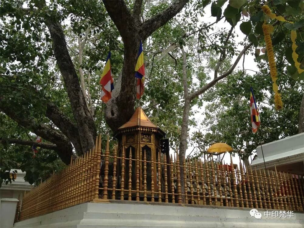 菩提树作为佛教的圣树,自佛陀诞生以来,就承担着传播佛教文化的历史使命。公元前三世纪,印度孔雀王朝时代,阿育王为了弘扬佛教,从菩提伽耶大菩提树繁衍菩提树分送各地种植。特别是阿育王的王子摩晒陀(Mahinda)和公主僧伽密多(Sanghamitta)渡海来斯里兰卡弘扬佛法之时,公主僧伽密多也特意从菩提伽耶大菩提树取枝带到斯里兰卡。公主到达斯里兰卡阎浮瞿罗之时,国王帝沙王亲迎菩提枝苗,并且护送到首都阿努拉达普拉,种植在一座高台之上,以礼拜菩提树为尊敬和纪念佛陀的方式。这株菩提树长大以后,国王又分支种于斯里兰卡各处,使得佛教在斯里兰卡广泛传播,直到今日。如今,在斯里兰卡王室和僧侣的庇护下,这株菩提树已经茁壮成长,距今已有2200多年的历史。![]()