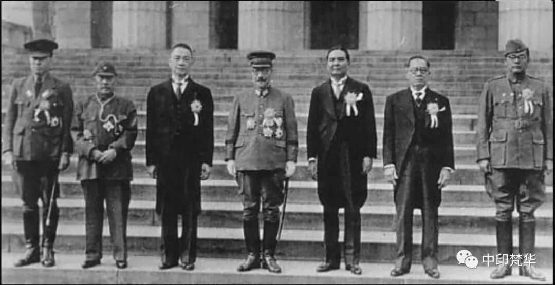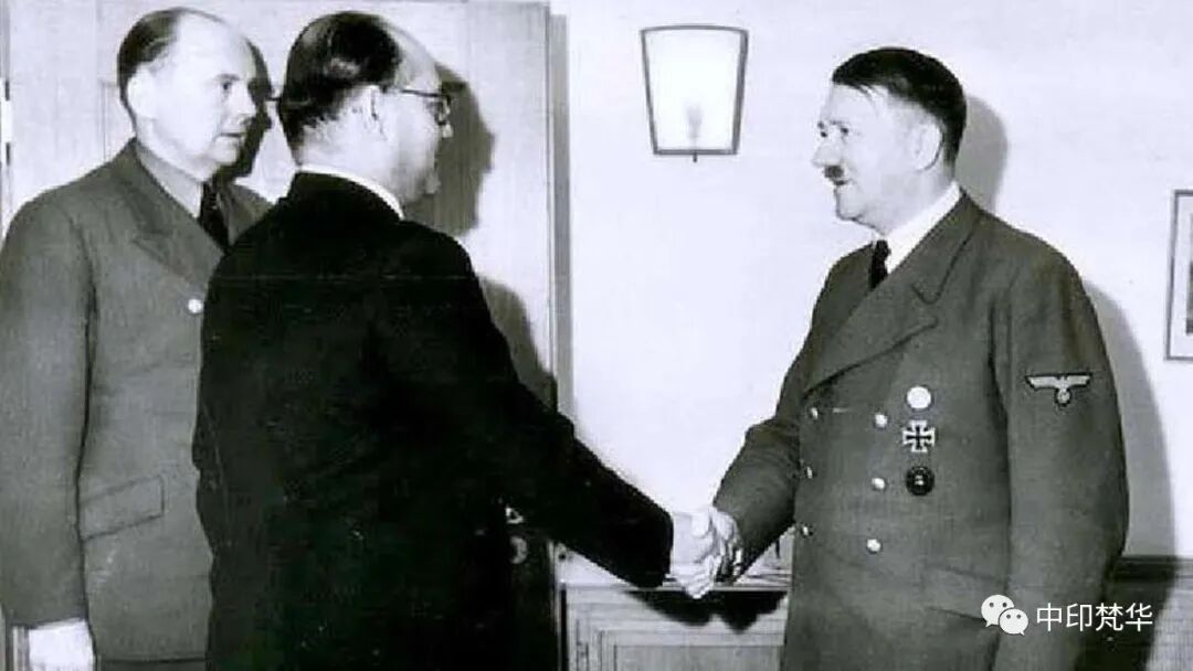 (鲍斯与日本战犯东条英机和中国汉奸汪精卫合影)
