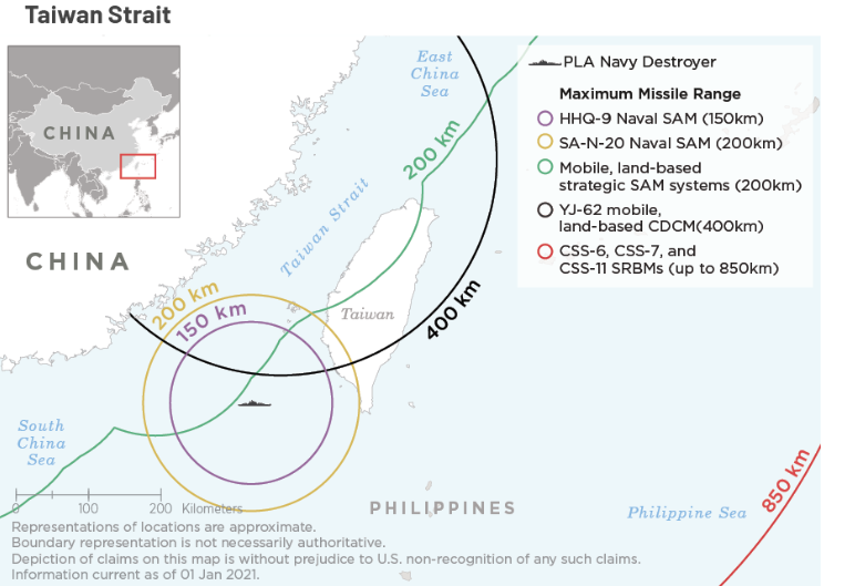 同时,中国的陆基防空导弹,将可以覆盖台湾海峡的大部分空域。美国空军在台湾海峡上空作战,不仅仅面对的是中国的飞机,还需要面对中国的远程防空导弹。