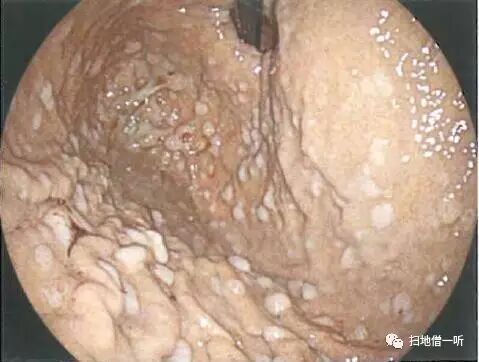 肠上皮化生:好发胃窦部局限存在,进展后可发展至胃底胃体,呈灰白色调多发扁平隆起,隆起与隆起之间可融合。背景粘膜多为高度萎缩变化。