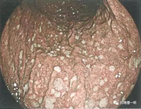 胃底腺息肉:为胃底腺区域多发隆起,形态以山田II及山田III型多见,隆起较高,常伴表面血管扩张。