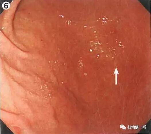 此病例一年前曾行胃镜,相同部位可见一2mm褪色性病变,当时未曾引起重视。