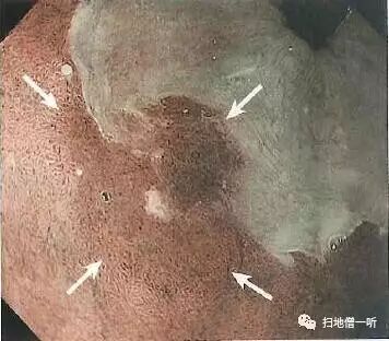 Barrett上皮内右侧壁发红的隆起性病变需怀疑Barrett腺癌