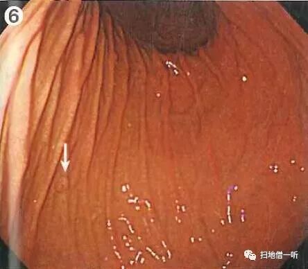 穹隆部及胃体上部可见大小不等的白色调扁平隆起—称为春间.川口病。