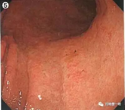 图1可见胃窦部条带形发红,靛胭脂染色后更加清晰,被定义为术语:条带状发红,此为HP阴性所见粘膜像。