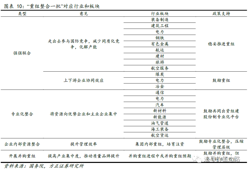 重组整合一批,指推进央企强强联合、央企间专业化整合、央企内部资源整合和并购重组,实现国有资本优化配置。