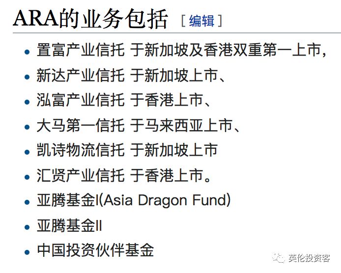 ARA(亚腾资产管理)成立于2002年,由李嘉诚旗下的长江实业林惠璋共同在新加坡合资组建,目前在亚洲8个国家拥有超过1300名员工,旗下持有超过90栋地产物业,占地面积超过5700万平方英尺,是亚洲最大的房地产投资信托基金管理公司之一