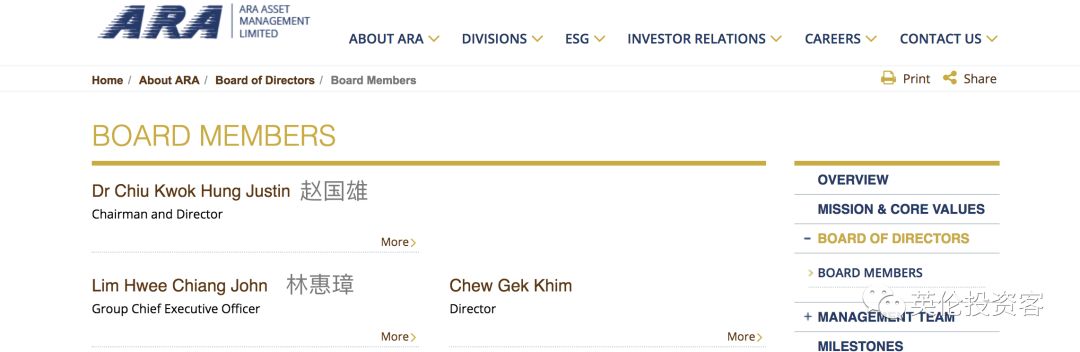 私有化之后,ARA管理层的决策权更大了,而ARA管理层两大负责人依旧是公司成立之初就加入的赵国雄和林惠璋