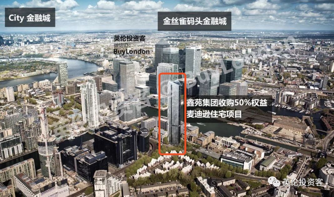 2018年3月22日,来自中国河南的开发商——鑫苑置业发布公告称,已经斥资2911万英镑(按照最新汇率计算约为2.6亿人民币)收购了位于伦敦金丝雀码头金融城的住宅开发项目The Madison的50%的股份