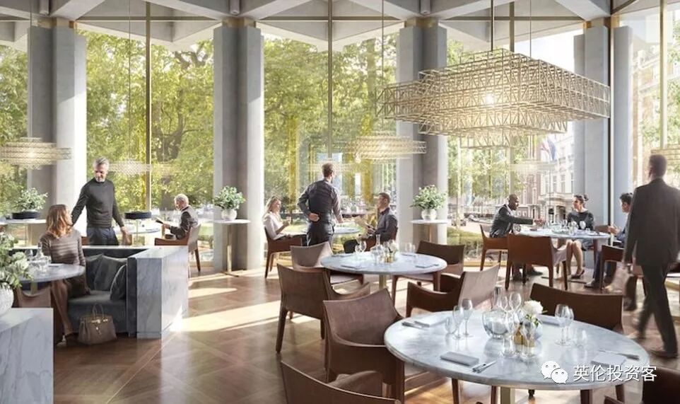 超豪华酒店方面,在建的伦敦新瑰丽酒店(Rosewood Hotel)就在No.1 Grosvenor Square对面,步行距离仅2分钟。