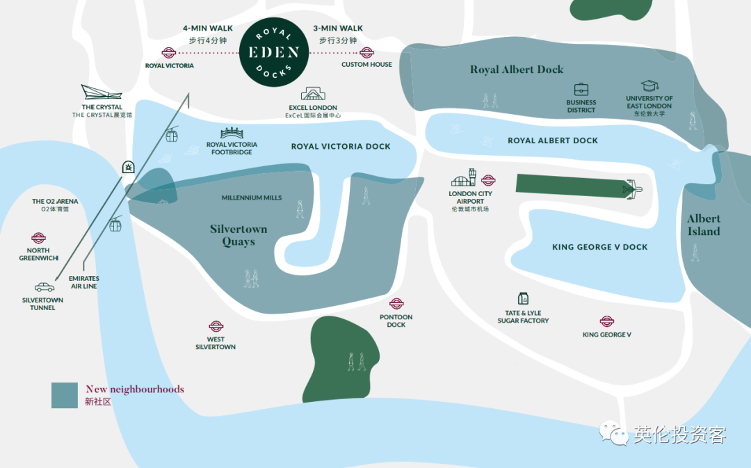 3. 现在交通已经很方便了,但未来还会更方便。Custom House这里有一个Crossrail大站,也就是我们说的伊丽莎白线,通车后3分钟到达金丝雀码头金融城,10分钟到达老金融城,17分钟到达牛津街。