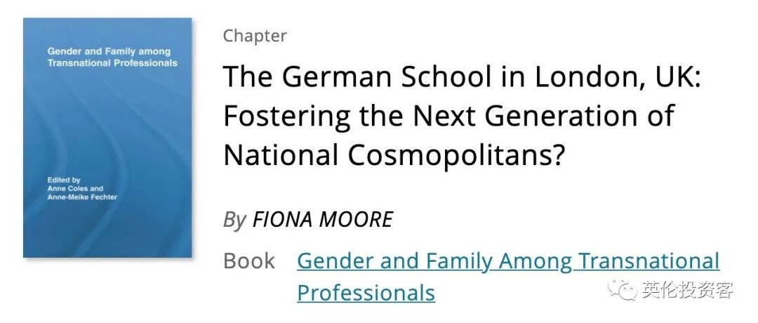 学者Fiona Moore在《英国伦敦的德国学校: 培育下一代国际大都市》一书中曾指出,伦敦的德国社区“依赖于微妙的网络联系”。