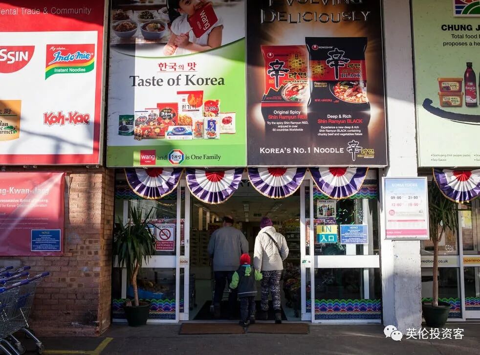此外,New Malden还有全英国最大最全的韩国超市H-mart、和另一家规模稍小但也品类繁多超市Korean Food,这两家超市里的商品的价格都要比英国超市里的韩国食品便宜很多。
