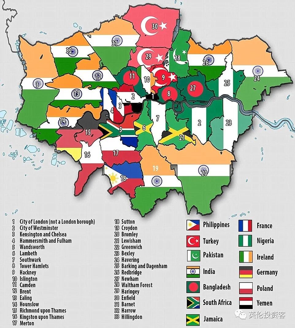 接下来,我们就带大家走近伦敦各大社区,看看白人、黑人、印巴人、华人到底都住在哪儿?