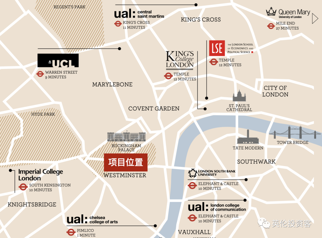 当然,项目距离伦敦多个顶级大学也非常近,步行或乘坐公共交通均可在20分钟到达以下大学: