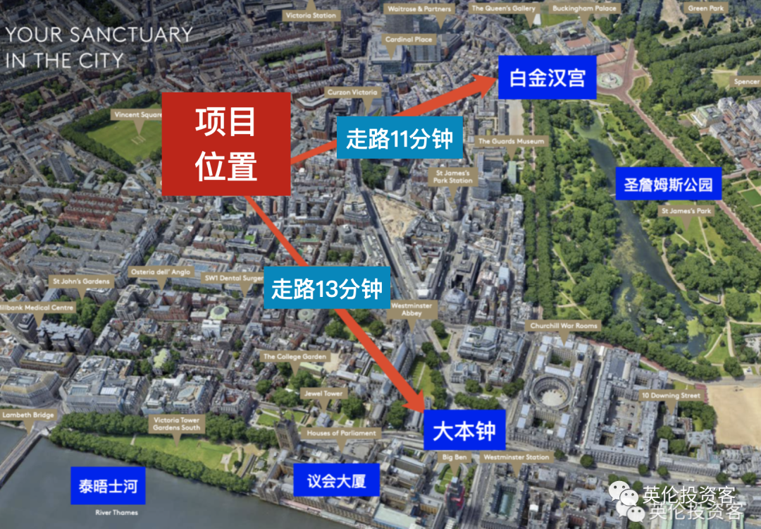 从Victoria维多利亚站地铁站出发,则可到达:如果只靠走路当然也可以,从项目出发,可快速步行到达以下知名地标:泰晤士河 River Thames:步行10分钟