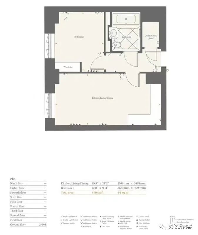 位置:伦敦老金融城,地标住宅楼王,一区核心地段,被各大银行和律所环绕,步行2分钟可达Moorgate地铁站(连通Liverpool Street女王线车站)。