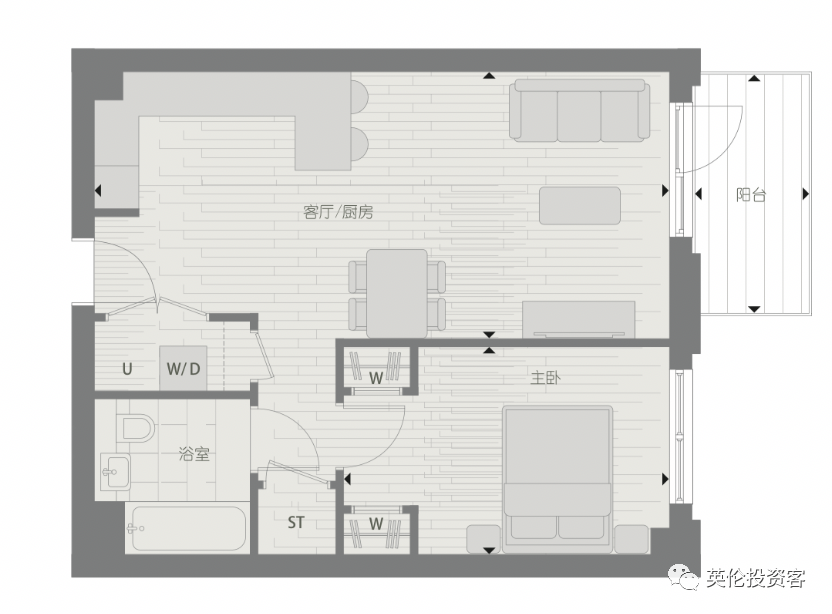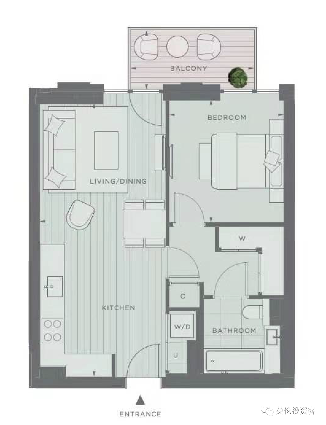 户型:Studio,室内面积39平方米,阳台5平方米,东朝向