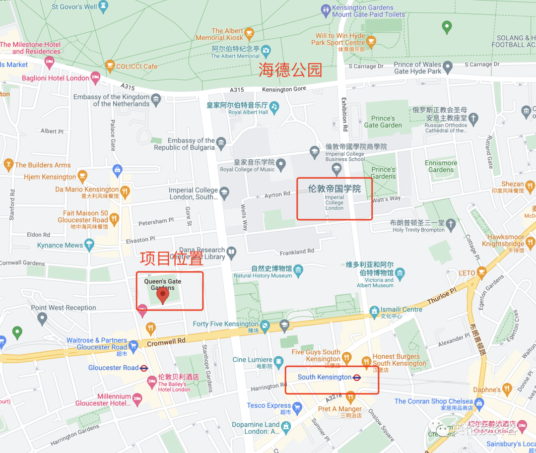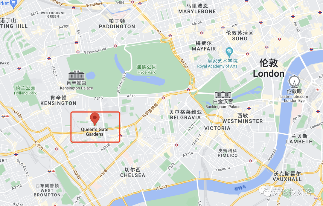 地址邮编:Queen's Gate Gardens, South Kensington, London SW7 5NB