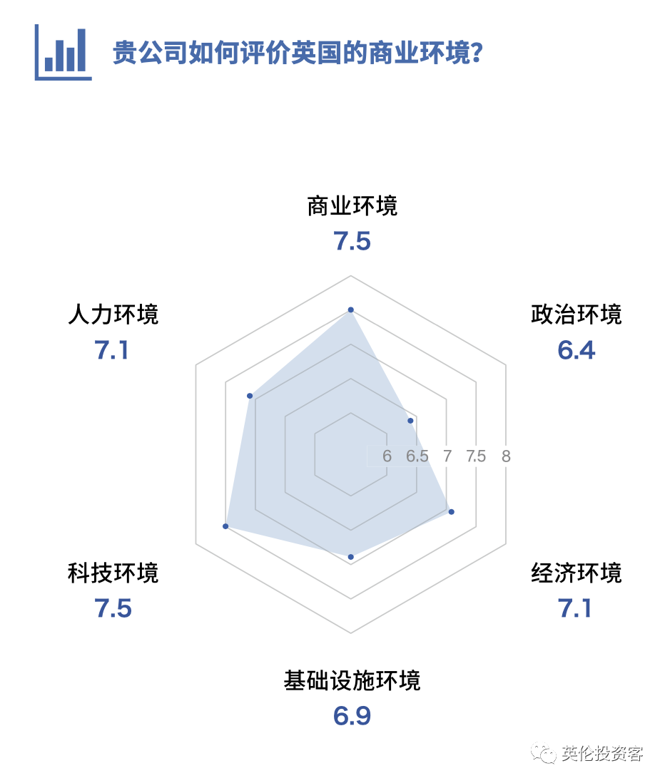 另值得一提的是,受访中资企业对英国营商环境从以下六个方面进行评分时,汇总出的六边形是这样的👇