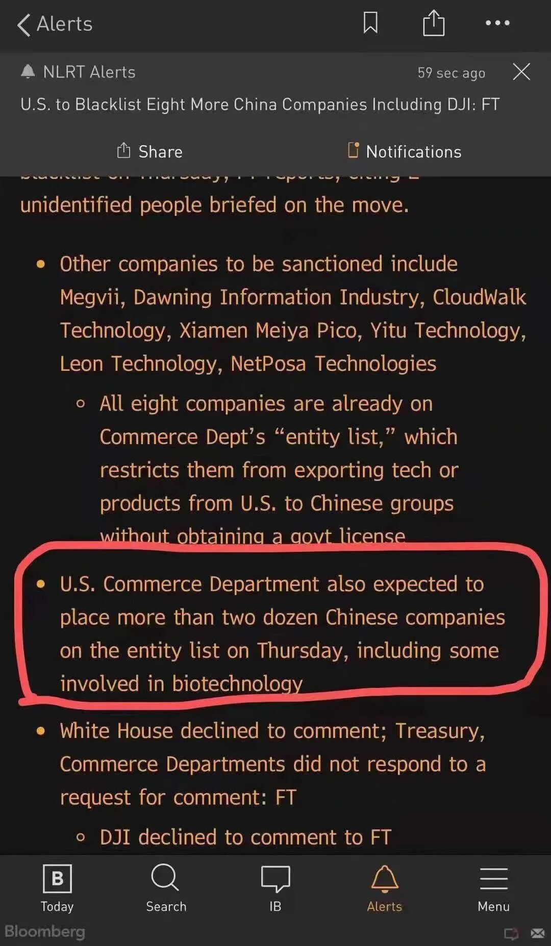 消息面上,许多业内人士指出,或许是因为“美国商务部宣布,在星期四计划把额外几十个中国公司也加入实体清单,包括一些生物科技公司”。