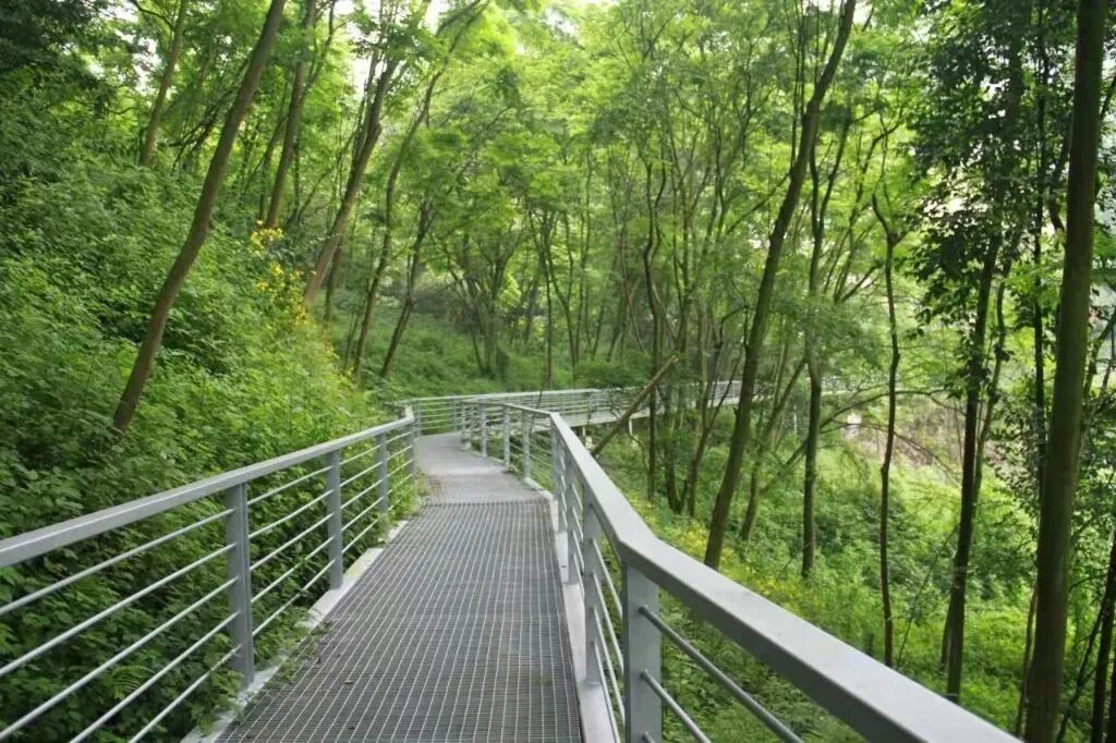 分为临崖步道、自行车道、龙门登山步道三种。其中,临崖步道全长约4.85公里,采用无障碍设计;自行车道位于玉峰山森林公园马掌坪,长约5.2公里;龙门登山步道全长约3.7公里,从龙门村登山而上路途中可以鸟瞰渝北两路城区和江北国际机场全景。