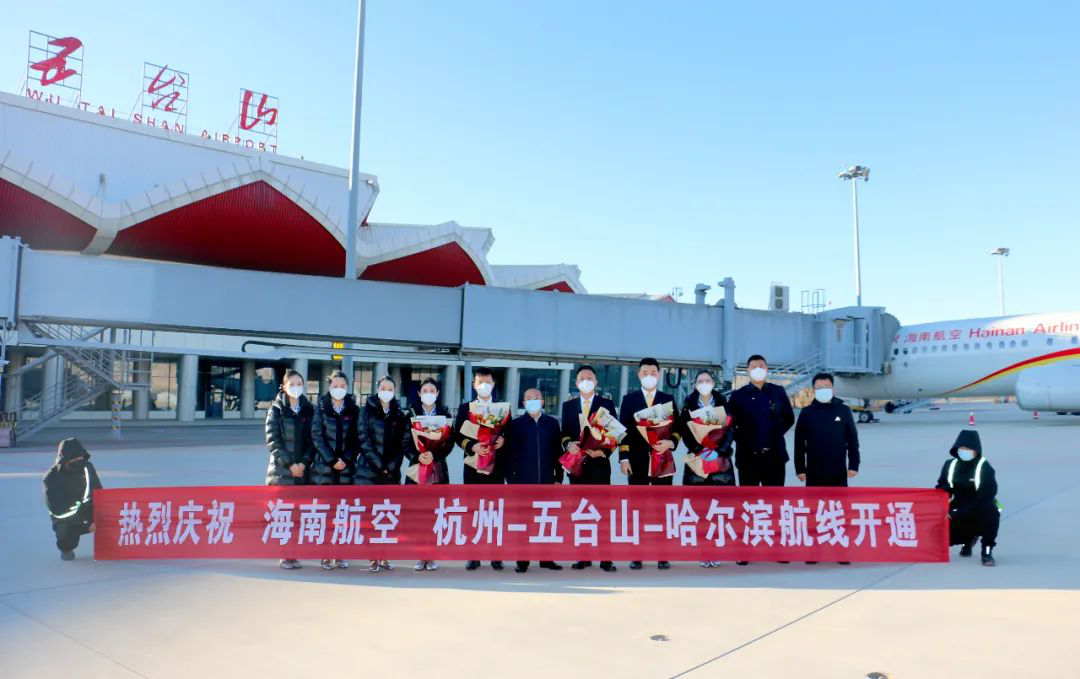 12月10日上午9时整,一架海南航空波音738型飞机平稳降落在五台山机场,标志着杭州-五台山-哈尔滨航线成功首航。随后,随着昆明航空公司波音738型飞机降落,昆明-五台山-沈阳航线也成功实现首航。