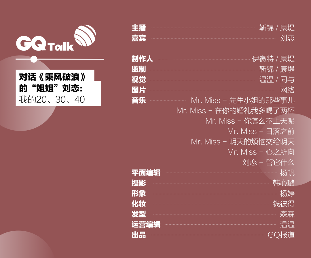 本期GQ Talk,我们请到了《乘风破浪》的“姐姐”刘恋。