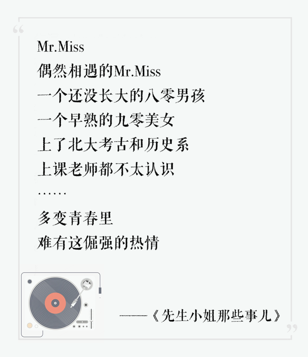 刘恋:20岁的时候,我刚组乐队,最大的宏愿就是上音乐节。当时之所以选择从成都来北京,就是因为觉得北京的音乐环境好,有各种livehouse和音乐节。高中的时候,我就特别羡慕学校乐队的人,没有想到自己有一天也可以有自己的乐队。在北大认识杜凯,有了Mr.Miss后,我心里想,什么时候能上一次音乐节,我们就功德圆满了。