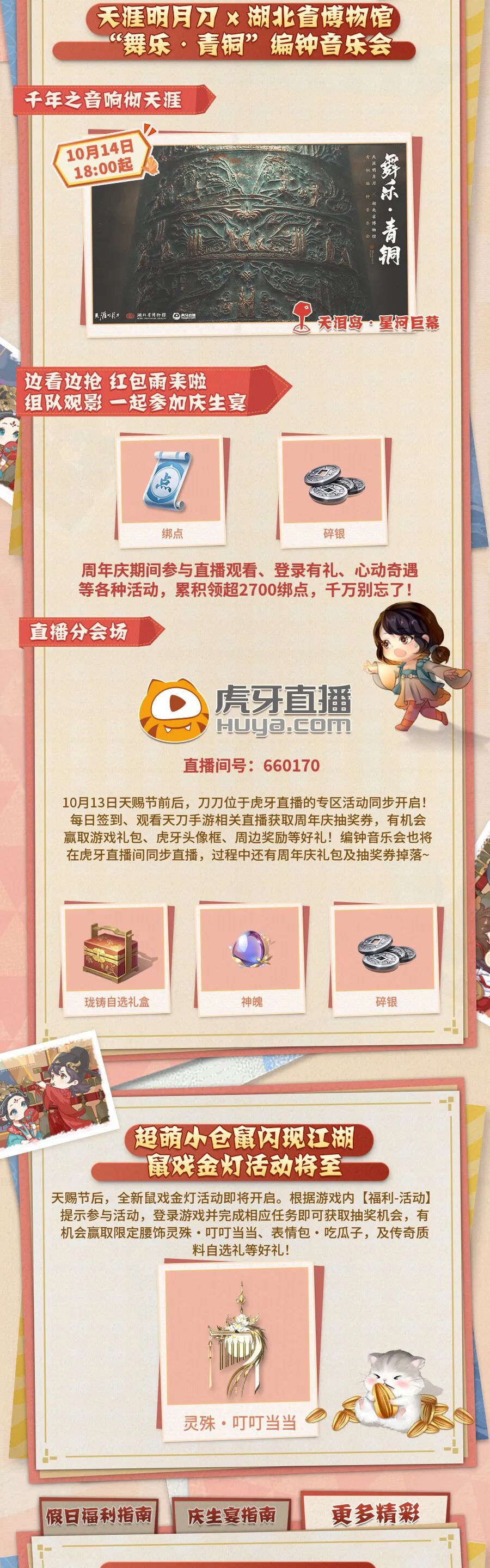 山河忽晚,人间已秋。岁月斗转星移,刀刀两周年庆暨天赐节盛典来临之际,全新资料片《盛世有青铜》也将于10月13日惊喜上线。天赐节“不完全”福利攻略刀妹已准备好,快来划重点~