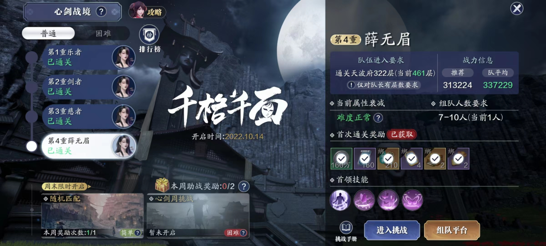 推荐功力:推荐战力313224,均战达到的31W队伍即可尝试挑战。