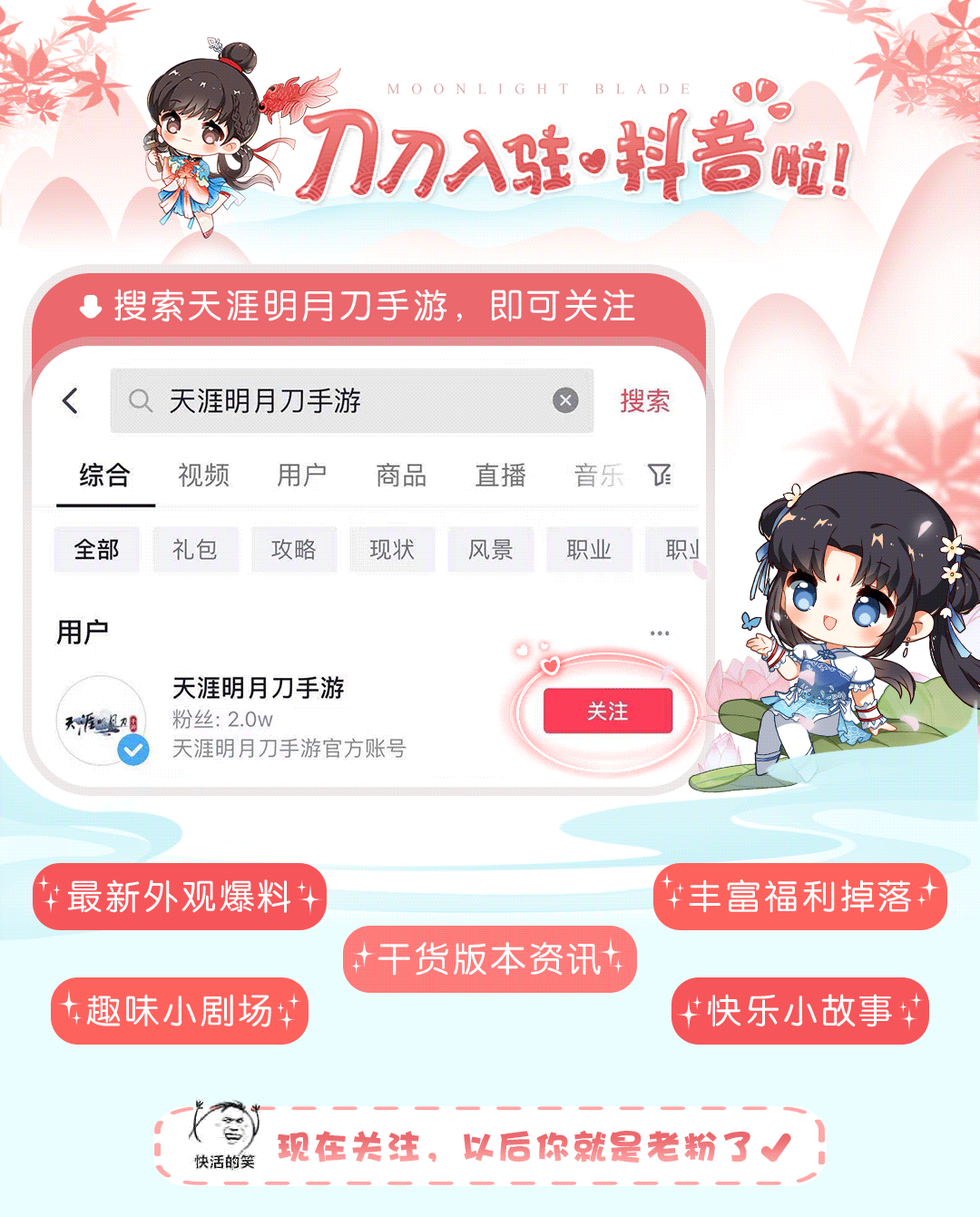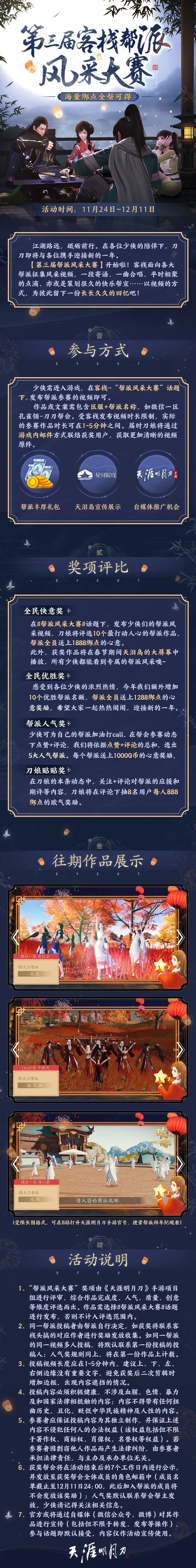此外,刀妹也在同步征集帮派视频作品,投稿作品同样有机会在春节期间登上天泪岛大屏幕哟,期待看到少侠们的作品!