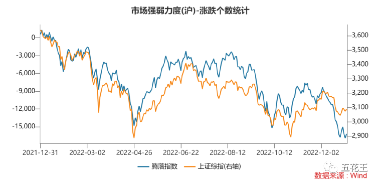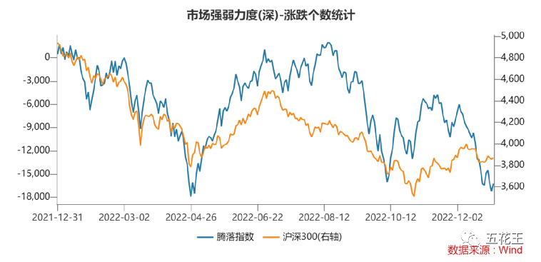 整个市场情绪在腾落指数上,也是比较不乐观的一种表现。