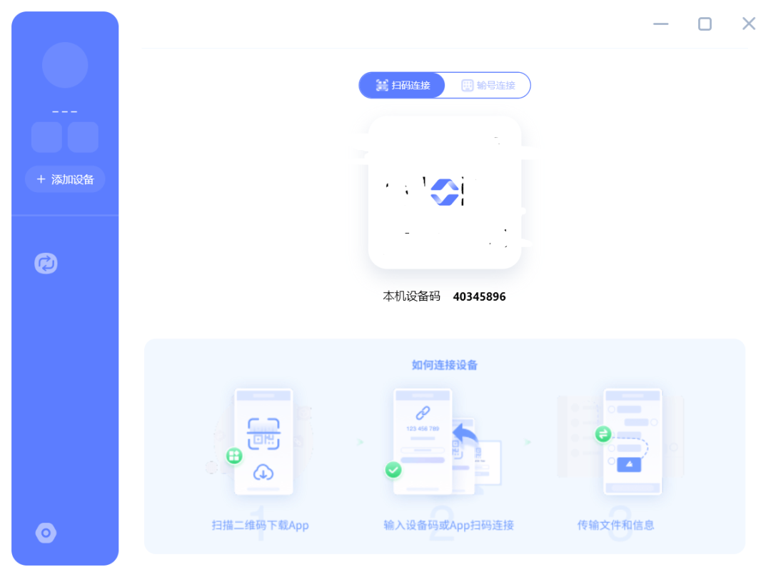软件提供有两种方式连接:通过扫描二维码和输入软件生成的连接码进行连接。光看界面,还以为只是一个本地局域网的传输工具,结果没想到是走的是服务器通道,没有网络还会连接失败。![]()