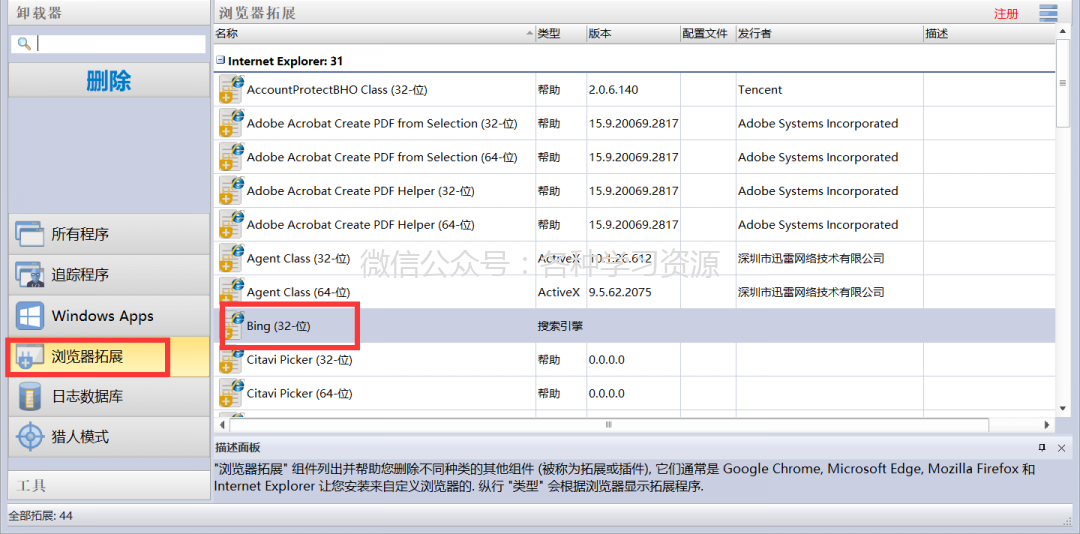 多功能卸载工具,支持浏览器扩展管理