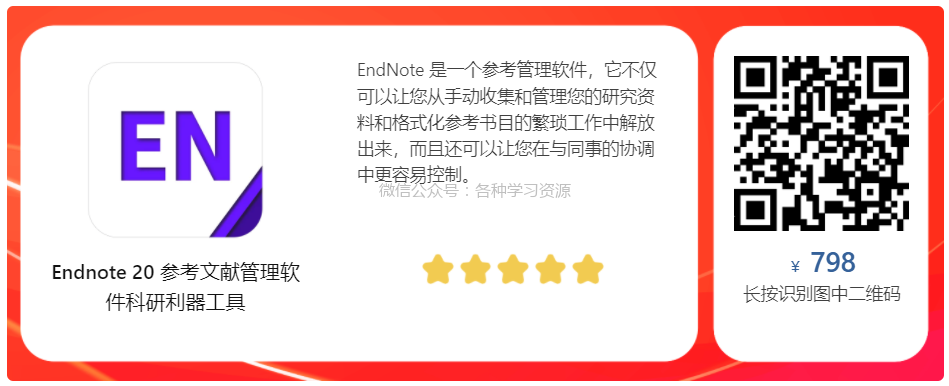长按下方图片识别二维码进入购买页面(或点击文末阅读原文链接),本号专属优惠立减100元,只需798元即可获取终身授权的EndNote!