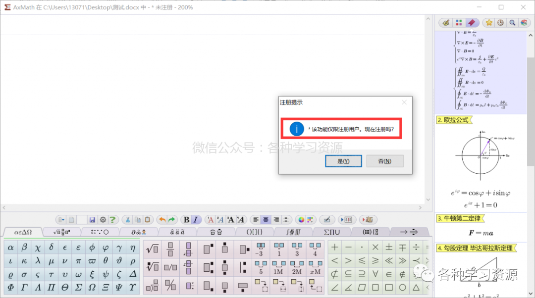 注册版功能更丰富,支持一键插入复杂公式、专业领域参考书籍公式、绘制公式等等!