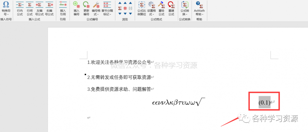 1.点击右编号插入公式