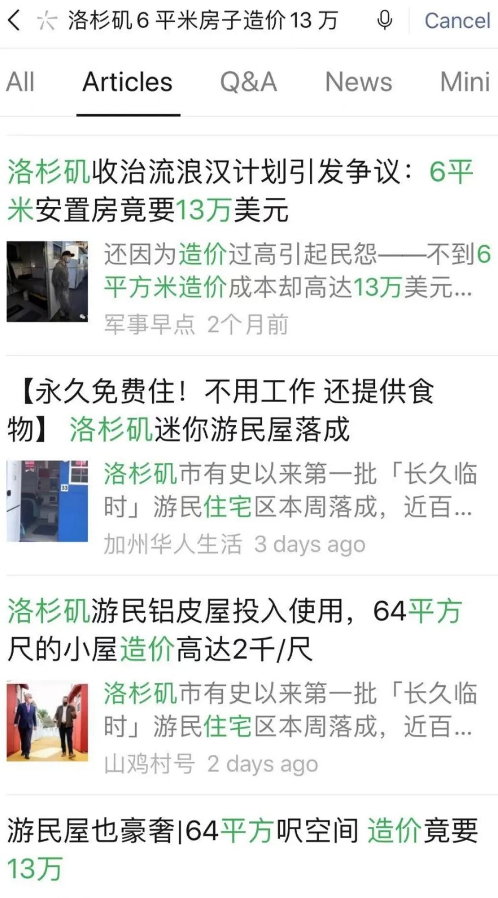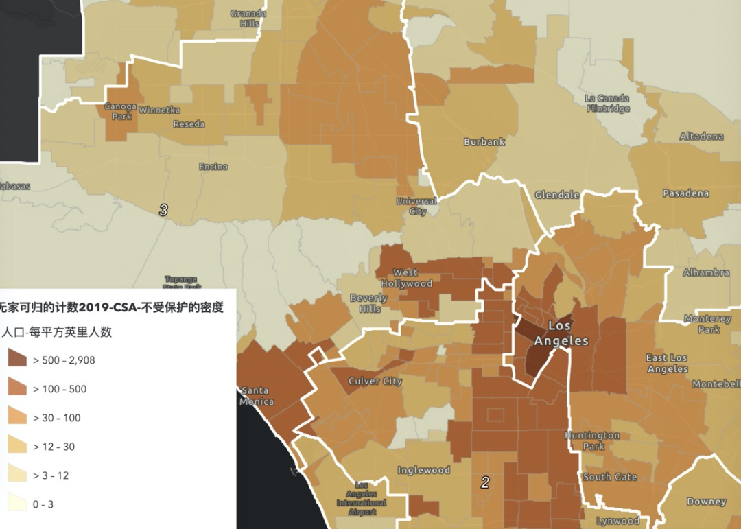 根据2020年的最新数据,洛杉矶游民总数达到了6.6万,约有4.1万名无家可归者缺乏住房和庇护所。因为Covid-19肆虐,游民堪忧的卫生状况增加了新冠疫情的传播风险。美国地区法院法官大卫-卡特(David O. Carter)要求尽快将无家可归者转移到庇护所,可是市政府并没有足够的庇护所收容这么多的无家可归者。 整个洛杉矶游民分布 数据来自2019年(https://storymaps.arcgis.com/) 洛杉矶市政在法官的施压下,考虑再三,并参考以往的案例,找到了临时的可行解决方案。就是在空地上建微型房屋村(tiny house),这是一种能取代传统庇护所,全新的创意方案。微型房屋,或者“小木屋”大家租过房车或者后院想开airbnb挣钱应该都很熟悉,它最大的特点是什么呢? 便宜和快!