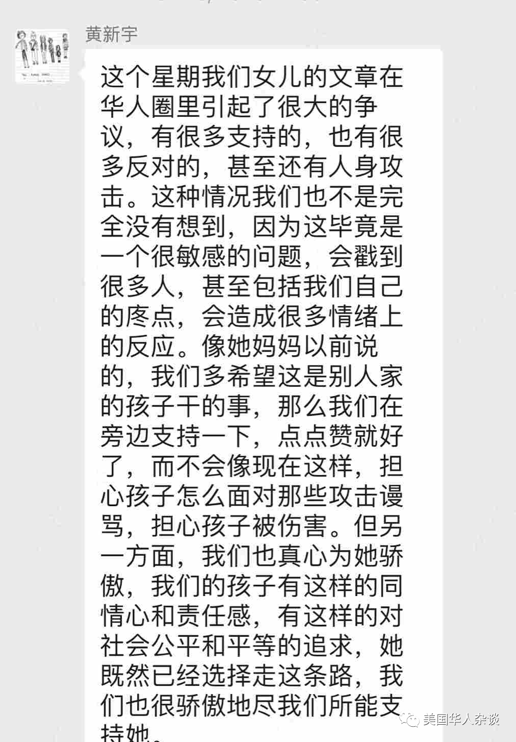 黄艾琳马上要上大三目前处于gap year(间隔年),她在耶鲁读英语专业,活跃于耶鲁校报专栏、耶鲁各个亚裔政治社团,在学校她颇有人气,在校外她在美国华裔历史博物馆做兼职远程实习;我以华裔身份为荣:我并不认为自己像大家说的一样,“被白人洗脑”。我就是一个热爱中华文化的华裔美国人。我曾随父母回到过中国旅游,高中读书时,我的学校有一半是亚裔,我最喜欢的有色人种艺术项目(youth art programs for student of color),对我的性格影响最深远。从小到大被种族歧视的经历告诉我,我更要去说出自己的经历,而不是沉默。我的公开信发布之时,正值美国新冠疫情肆虐时期。耶鲁之内,亚裔美国学生协会、亚裔美国人诗词社团 Jook Songs都强烈支持我的观点;耶鲁之外,大量华裔前辈全力支持我,他们中有亚裔民权律师和活动家。数字化互动发挥了潜能,它虽不能替代人际互动,但微信也许就是华裔社区融合的平台。这场公开的对话吸引了好多我不认识的学生以及年长移民,不同人写了微信文章为我辩护。我收到过叔叔阿姨电子邮件,告诉我这篇文章改变了他们的观点。有一位住在中国年迈的老奶奶不懂英语,但是在读了我的中文信之后,与她所有中国朋友分享了我的信。我当时就意识到,这就是鼓励我继续前进的动力。通过在线组织,我能与从未见面的人建立联系。每一次在隔离时期的线上互动,我都正在参与创建一个庞大而能产生变革的社区。美国疫情期间我暂时不能返校,得以好好和爸妈生活在一起。在我的信迅速传播之后,微信对话似乎是弥合两代人之间代沟的好途径。其他第二代华裔美国人对我伸出援手,担心与父母沟通无望,说他们也担心自己的父母会掉进“微信右翼黑洞”。在过去的几年中,微信上散布着越来越多的谣言,侵害了对英文阅读存在障碍的北美华人和新移民,匿名者Q阴谋论和仇恨言论作为简体中文主流信息在广泛流传,微信还出现了无条件拥护保守派政客的贴文。甚至,我看到过微信群中有人转发“不用戴口罩”。其中,最夸张的部分,就是亚裔美国人社区中根深蒂固的反黑人现象,这直接和美国整体的种族平权脱节。我的观点能不能说服大家是次要的,公开信能引起了社区讨论的层层涟漪,就是一个能打破华裔孤立,把大家聚在一起的好机会。如果两代人有代沟,比起互相说服,不如我们对话,互相听懂对方的立场再去讨论,所以简体中文需要有美国年轻人的观点,尤其是中文不流利的华二代们的观点。我不能代表他们,但我想把他们中一部分人想法说出来。写文章是同父母谈论种族主义的一个入口, 正好我对美国华人历史和中文写作感兴趣。这半年来,我和另一位共同创办人刘珊妮(Sunnie Liu)一直在做一个志愿者项目,叫做《心声》。《心声》的目标是以爱和“照顾我们的社区和家人为出发点”,减少弥合华裔美国人与美国大社会之间的鸿沟,弥合华一代与华二代的鸿沟,现将英文文章合作发表在”图解美国“公号。微信“心声“项目网站:https://zh.thewechatproject.org/我想放大微信上志同道合的公平正义者之声,我们联合耶鲁美国亚裔平权运动的同学,在全美招募学生志愿者,以抵抗微信上反黑人,反移民,反同性恋的风气。《心声》最近的一篇文章以信件的形式向读者致意,文章中说:“我们首先是您的孩子,想与我们的父母和祖父母交谈的年轻的华裔美国人,我们不会停止这些沟通。” 这样做的目的是以一种与他们的经历有关的方式。作为华裔社区的未来,我想去接触那些以前从未理解种族主义的人。《心声》的团队主要由华裔二代女大学生组成,也有中文母语的留学生,留学生们在翻译上帮了大忙。我们为微信读者撰写和翻译文章,讨论教育差距(educational gap)、科普社会福利(social walfare)、削弱警察资金(defund the police)以及美国历史系统性歧视(systemtic racism)等主题,初步获得了一些关注度。我们将这些文章上传到微信,不是为了向人们炫耀说:我们受过良好的教育,我们掌握了丰富的信息,我们拥有更好的观点。我们的出发点相反,我想深入了解社区,走进长辈的世界,真正平等的交流。除了《心声》项目,我们制作宣传图片和视频、并举办线上活动促进华二代年轻人交流。在过去,我喜欢用诗歌表达自我,诗歌作为创意性语言,能做到许多现实中我无法完成的梦想。我最爱李白和杜甫,也是冯内古特和普拉斯(Vonnegut and Plath)的“骨灰级粉丝“。诗歌能解放思想和未来,启发自我并引领时代。现在,我无心写诗,我不想放弃去感受所有美国少数族群,包括亚裔、华裔所曾经历过的共同挑战,痛苦和创伤。去年秋天,黄艾琳因为支持平权法案(Affirmative Action),引起了新一轮的争议。 有一位自称在贫困社区长大的华裔男子声称去黄艾琳家附近拍了视频(未知是否真实),视频中的背景是一个有特朗普的支持者标志旗的“富人区”,“你住在我们周围之万八千里外,为什么要对华裔社区发表评论?” 他批判黄艾琳不能代表像他一样在华裔贫民区长大的移民亚裔孩子。我多次强调,我不能代表所有亚裔美国人。我出生长大都在新泽西,家庭条件较好教育开放,邻居以白人为主。我猜测自己耶鲁名校生标签,是引起大量关注的核心,在耶鲁我上过亚裔美国人历史课程,我自认为属于BIPOC的一部分(黑人black,印第安人indigenous,以及有色人种people of colors)。作为亚裔女性,成长中我经
