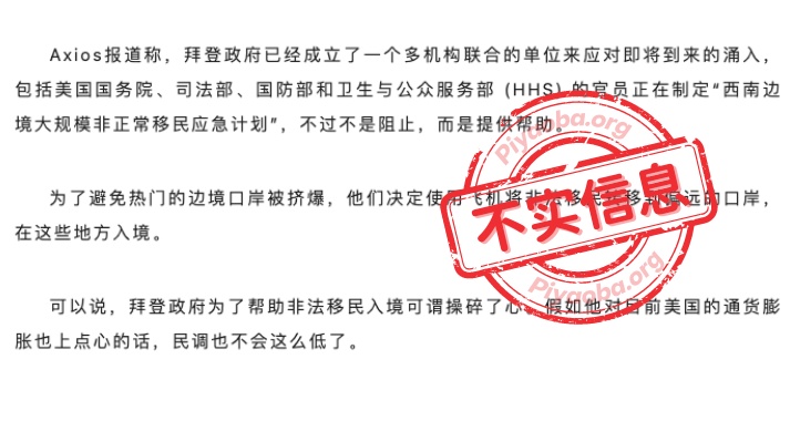 因为带着明显的“反拜登”和“反非法移民”情绪和主观倾向性,除了多处事实错误外,两篇文章里还出现了不少夸大其词乃至胡说八道的说法,诸如“美国的国门不设防地打开,所有人都可以涌入美国“,“拜登打开国门,任由进入”等来收割符合自己政治立场的流量。