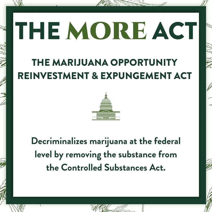 这项立法被称为 《大麻机会、再投资和免责法案》(Marijuana Opportunity Reinvestment and Expungement (MORE) Act)”。除了在联邦一级将大麻非刑罪化之外,该法案还将从人们的记录中删除以前因大麻定罪的程序,并对大麻产品的销售征税。