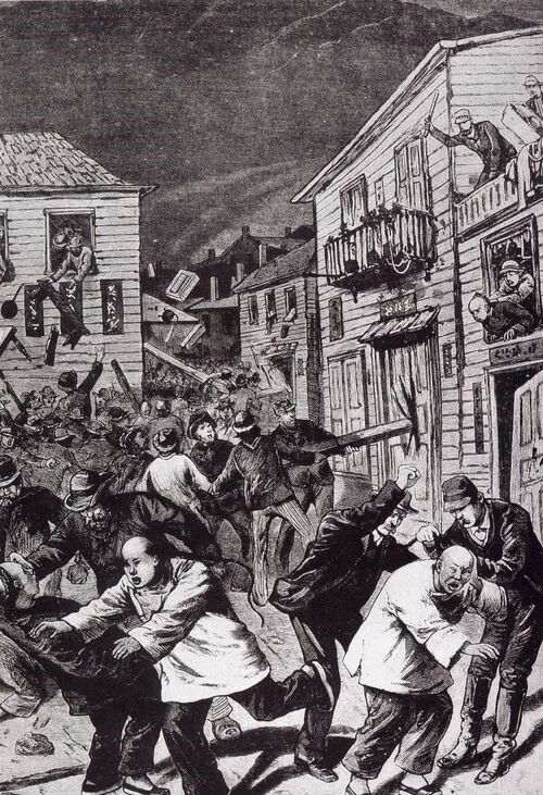 1871年的唐人街大屠杀见证了美国有史以来最大的私刑:500多名白人带着刀带着枪,声势浩大的袭击了唐人街对19名中国人实施私刑,并且摧毁了唐人街的商店和房子,但是美国当局居然没有真正遵循法律严惩白人犯罪分子。