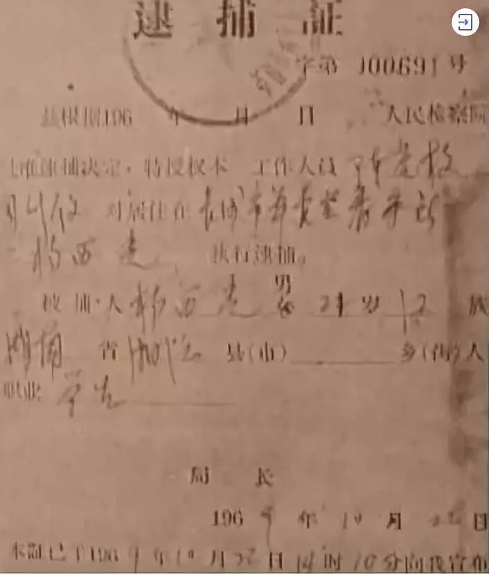 ▲杨小凯的逮捕证