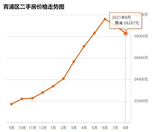 青浦区8月均价 38287 元/m²,7月均价 39018 元/m² 同比上月下跌 1.91% ↓,同比去年同期上涨 20.66% ↑。