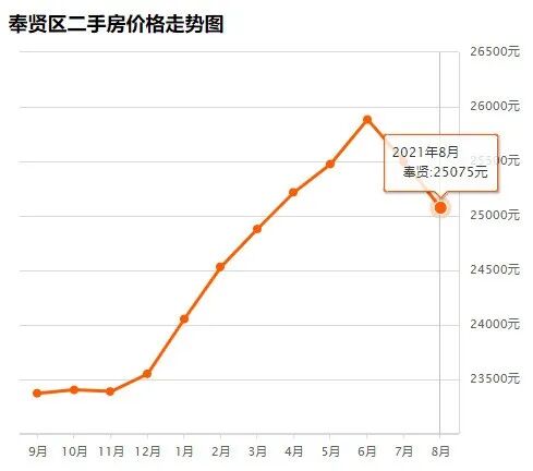 奉贤区8月均价 25075 元/m²,7月均价 25499 元/m² 同比上月下跌 1.70% ↓,同比去年同期上涨 8.01% ↑。