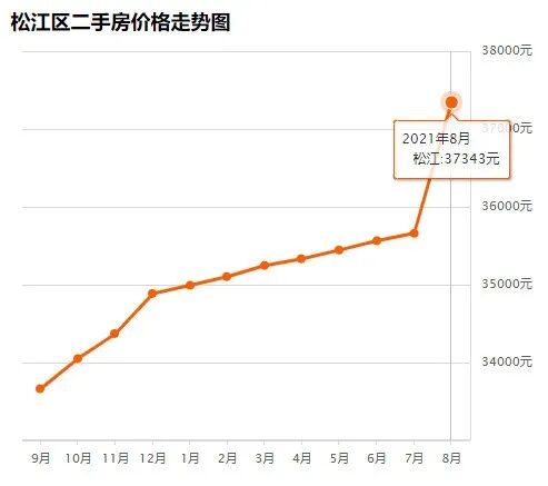 松江区8月均价 37343 元/m²,7月均价 35660 元/m² 同比上月上涨 4.72% ↑,同比去年同期上涨 9.87% ↑。
