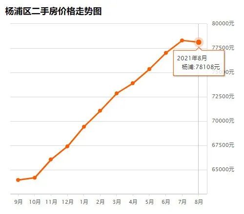 杨浦区8月均价 78108 元/m²,7月均价 78294 元/m² 同比上月下跌 0.24% ↓,同比去年同期上涨 21.99% ↑。