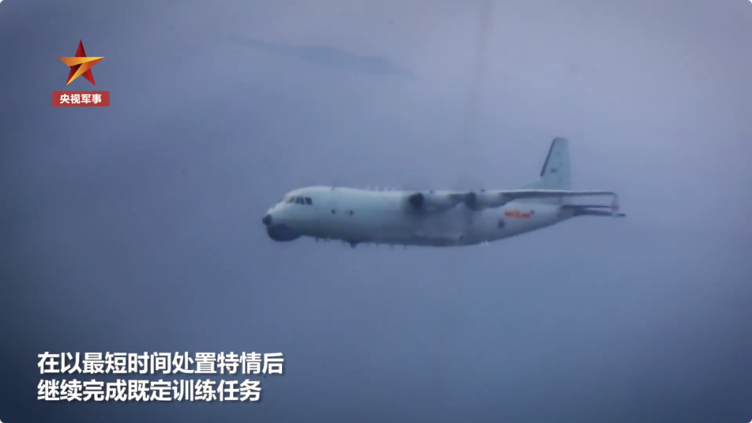 在预警机的指挥引导下,反潜巡逻机对进入我训练空域的不明外机进行警戒监视、查证识别