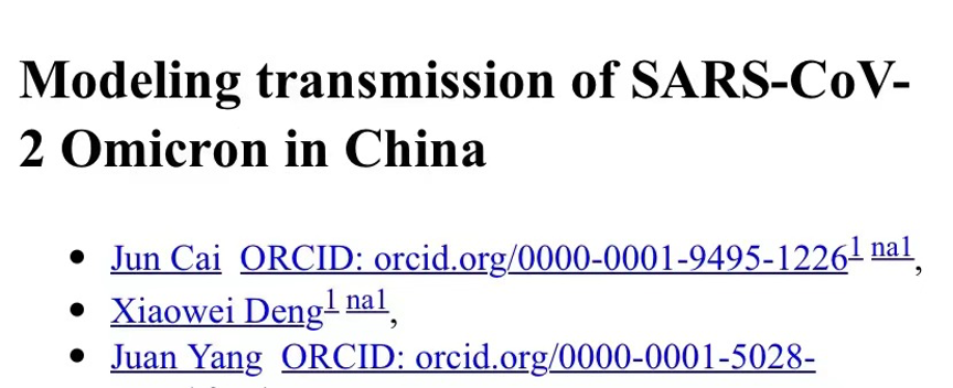 1. Cai, J., et al., Modeling transmission of SARS-CoV-2 Omicron in China. Nature Medicine, 2022.(作者:张洪涛,笔名“一节生姜”,著有科普读物:《吃什么呢?——舌尖上的思考》,《如果舌尖能思考》。可以谈最前沿的医学研究,也可以讲最通俗的故事。)